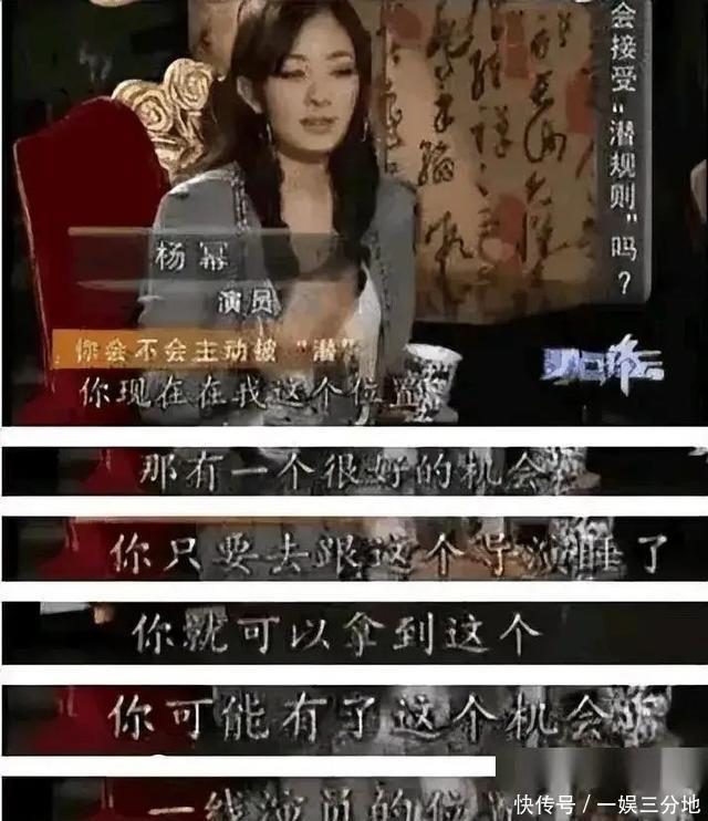 杨幂遭遇潜规则 杨幂凭着《仙剑奇侠传三》里的雪见一角爆红后,成了圈内炙手可热的小花。 可走红没让她避开行业里的暗礁,反而要直面更多明里暗里的刁难。 有次在节目里,她提起在拍某部剧时,导演找她谈戏,话里话外暗示要“懂事”,潜规则的意思明明白白。